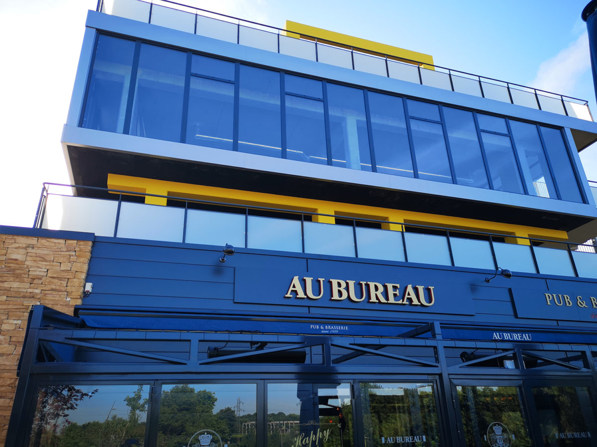 Notre dernière réalisation présente une façade vitrée composée de doubles vitrages isolation et sécurité renforcée. Ils sont composés d’une face feuilleté 44.2, d’un espace d’Argon avec intercalaire noir Warm Edge et d’un verre faiblement émissif.