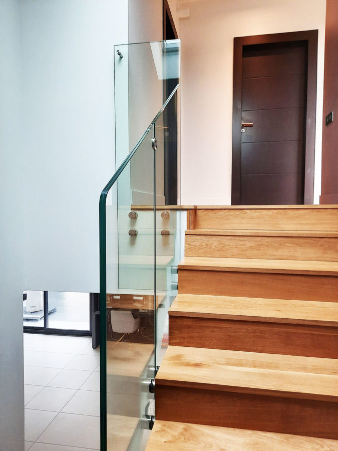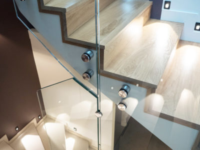 Enfin, des coins arrondis agrémentent chaque extrémité de l’escalier afin de sublimer la finition ce garde-corps vitré.