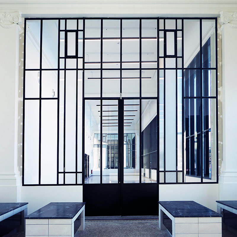Ces dernières ont été installées sur des châssis fabriqués par la maison de Jean Prouvé. Architectes et designers de renom, la maison familiale avant-gardiste de Nancy a profondément marqué l’histoire de l’architecture et du design. Ici les châssis se marient parfaitement avec le vitrage pour un rendu exceptionnel dont nous ne pouvons qu’être fiers. La récupération des châssis existants de Prouvé, qui étaient à l’origine placés à l’extérieur, ont été restaurés et remis en place à l’intérieur. Aussi, cette initiative permet de conserver le patrimoine exceptionnel de cet artiste nancéien et de le mettre en valeur.